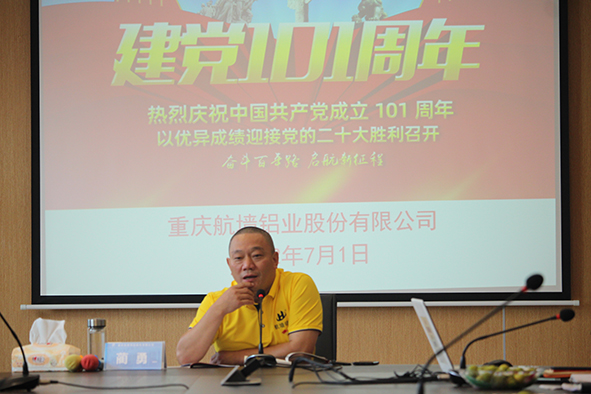 2022年7月1日,是中國(guó)共產(chǎn)黨建黨101周年紀(jì)念日,中共重慶航墻鋁業(yè)股份有限公司支部委員會(huì)組織開(kāi)展了“學(xué)黨史-明來(lái)路的正確,踐初心-創(chuàng)未來(lái)之輝煌”為主題的系列活動(dòng)。