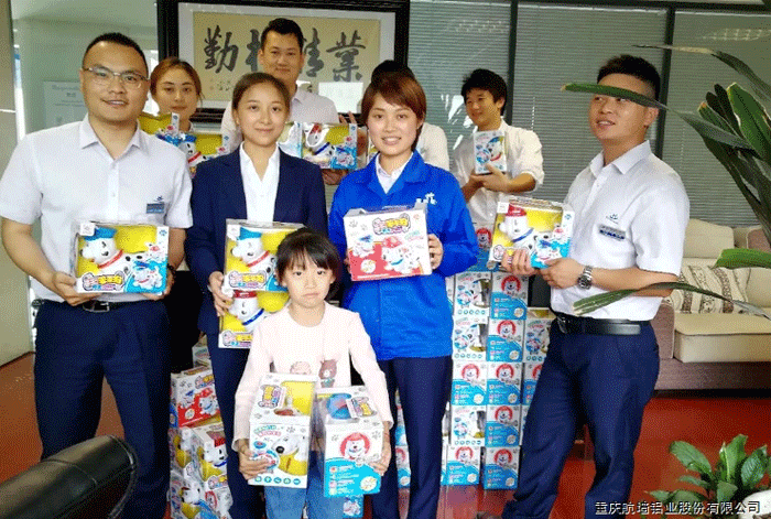 2018年6月1日,公司工會(huì)為了體現(xiàn)對(duì)員工的關(guān)愛(ài),為12歲(含12歲)以下的75名員工子女送去了祝福,贈(zèng)送了禮物(電動(dòng)狗)。
