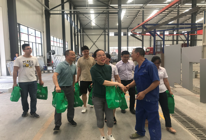8月13日14:30時左右,一輛標有“綦江區總工會2019年‘夏送清涼’的車”緩緩駛進航墻鋁業生產車間,綦江區人大副主任、綦江區總工會主席劉洪兵,綦江區總工會黨組書記、副主席梁曉春,副主席劉世平,副主席朱澤東等領導,頂烈熱、冒酷暑來到車間慰問生產一線職工。