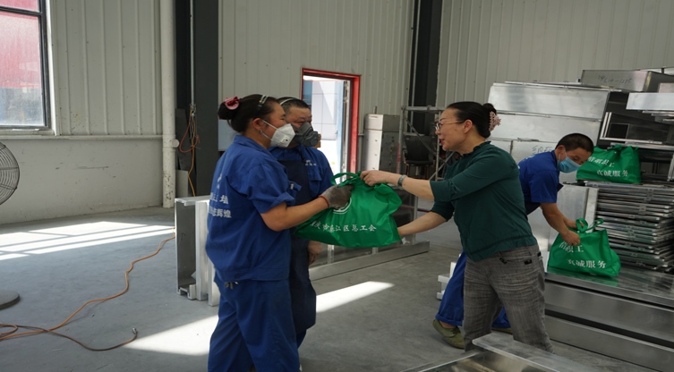 職工們激動地說:總工會真好!總工會的領導真好!噴房里溫度那么高,沒想到領導們把禮物送到里面來看我們,真的太感謝了!包裝組的姐妹們拿到禮物,開心的笑著,談論著:“工會是我們的娘家人,今天娘家人來看我們啦,還給我們送來了西瓜、綠豆、冰糖、防暑藥品,我們好幸福哦!”